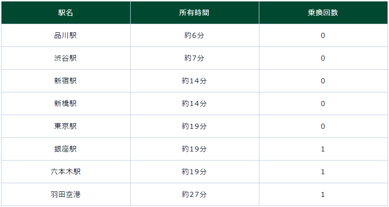 可以看到,住在五反田站附近,无论上班、上学的通勤,或休息日的出行都很方便。即使需要乘坐新干线的时候,乘坐出租车到品川站也仅需700~1,000日元,所以就算拿着很重的行李也很方便。