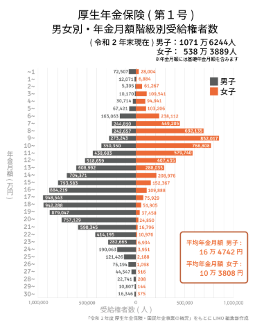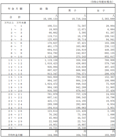 关于日本人能领到多少养老金?2021年12月发表的厚生劳动省的《令和2年度厚生年金保险国民年金事业的概况》公开了详细数据。