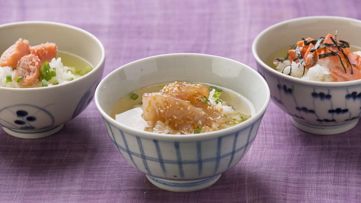 日本历史上著名的美食家、陶艺家,认真去钻研泡饭的人,是北大路鲁山人,还因此自成一派,称为“鲁山人流派”。其精髓在于,“不止意在食物本身,更要注重盛食物的容器”。泡饭在日本逐渐演变成茶泡饭,又叫御茶渍,至少在称谓上相当地“风雅”,就连做法也随之讲究起来。今天,我们就来介绍几种日本茶泡饭的料理方法。