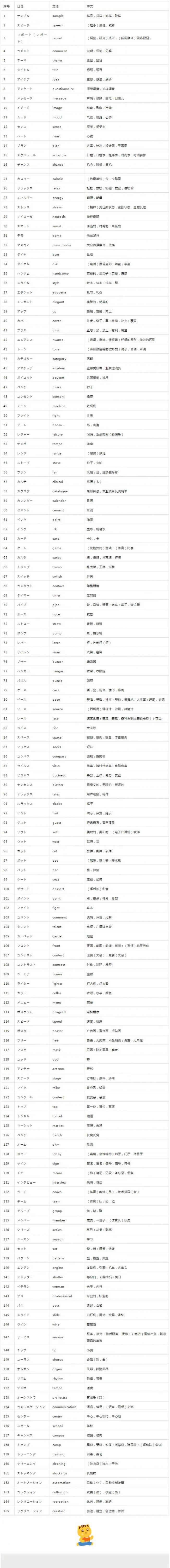 附:常用的英日对照词汇表:
