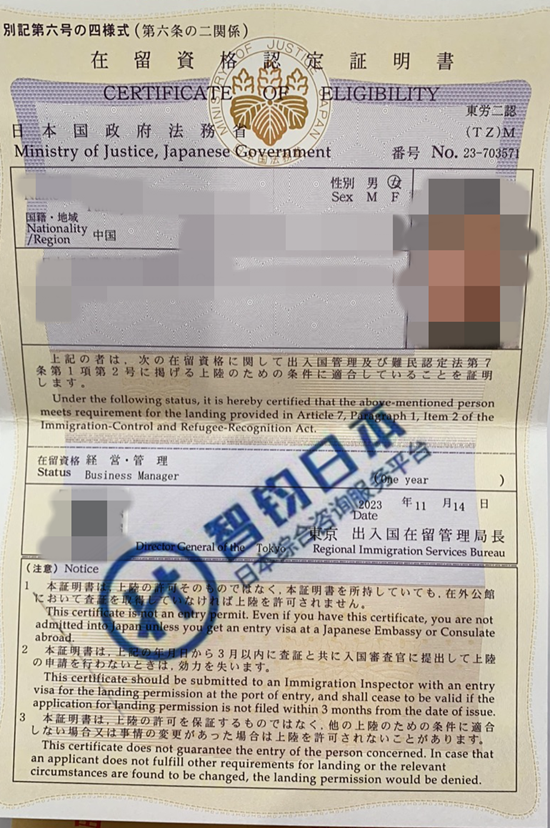日本投资经营管理签证成功出签分享案例 提交日:2023年4月3日