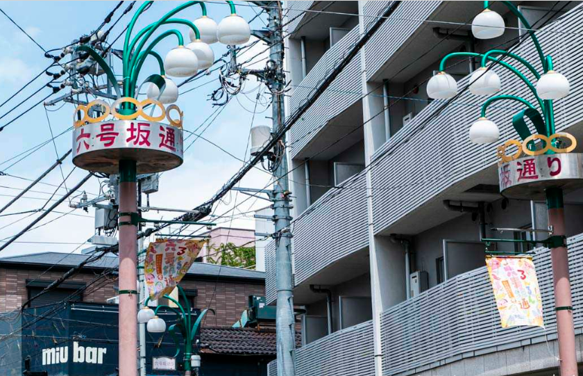从“幡之谷六号大街商业街”向北延伸,以自来水道为界,紧接着的就是“六号坂大街商业街”。到了六号坂大街商业街,可以看到拥挤着的各个老字号店面和个人店面的数量之多,又较为密集的排列,这可能就是这条商店街的个性。
