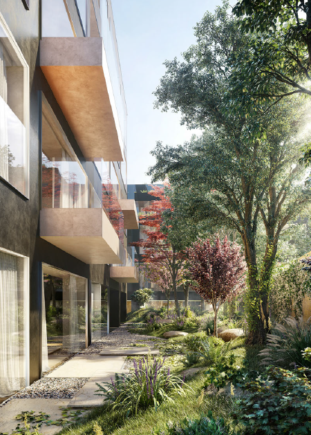 不过这种传统的审美和庭院的设计,随着日本国内越来越国际化的开放态度也有所转变。以位于表参道的“青山雅筑”项目的庭院设计为例,在庭院绿植的选择上除了符合日本庭院审美的标准上,还融合了西方的哲学之美,营造出了一幅按照四季变化所能呈现出不同美景的庭院景观图。樱花的粉色、松柏的绿色、枫叶的红色以及秋叶的黄色、竹叶的翠色等等,足不出院,即可享受到自然的美好。