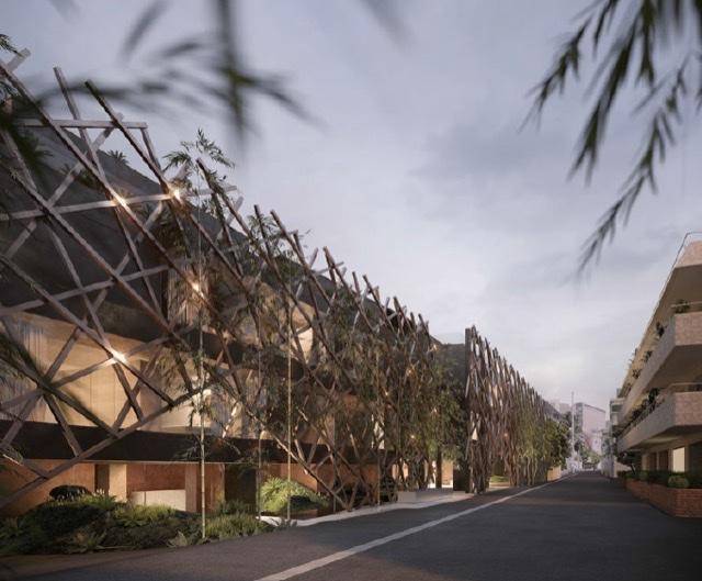 项目保留了中庭的园林景观,为了与庭院相呼应,整个建筑的外围使用了日本竹子和格子的元素,从外观就可以感觉到大自然包裹着整个建筑,仿佛逃离了城市的喧嚣,生活在大自然之中,并融入其间的美好。有人说青山雅筑远看像中国的鸟巢一样,外观大气、新颖,近看又如蚕茧一般,细腻、艺术。