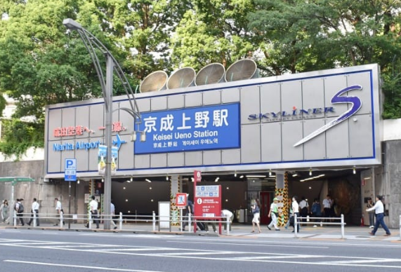 从JR上野的“不忍出口”出站步行到京成上野车站,约5分即可到达。从京成上野车站仅需45分钟就可以直达成田机场,车站设有特急“Skyliner”的专用售票处,到机场票价2,470日元,对于乘坐成田机场的人来说非常便利。通过京成车站后面的楼梯,可以直接进入“上野恩赐公寓”,这是日本第一个公园,也是著名的赏樱圣地,另外这里还有美术馆、博物馆、科技馆等,非常值得一逛。