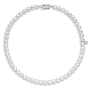 MIKIMOTO最经典的日本Akoya珍珠项链,历史悠久。日本的珍珠多使用海水珍珠,产地主要是日本濑户内海一带。与其他国家的淡水珍珠相比,日本独有的四季适宜的海水温度使得珍珠的光泽和晕彩和非常美丽,因此有着“小灯泡”的美称。由于海水珍珠的产量稀少,价格也相对较高。Akoya珍珠要求的尺寸通常在2毫米到10毫米,首饰的通常尺寸在6毫米到8毫米,到8毫米以上,长到10毫米的珍珠则非常稀少。虽然个头稍小,但珍珠均匀润泽、光芒耀眼,常被制作成项链、耳钉等首饰,这也是Akoya珍珠的魅力所在。