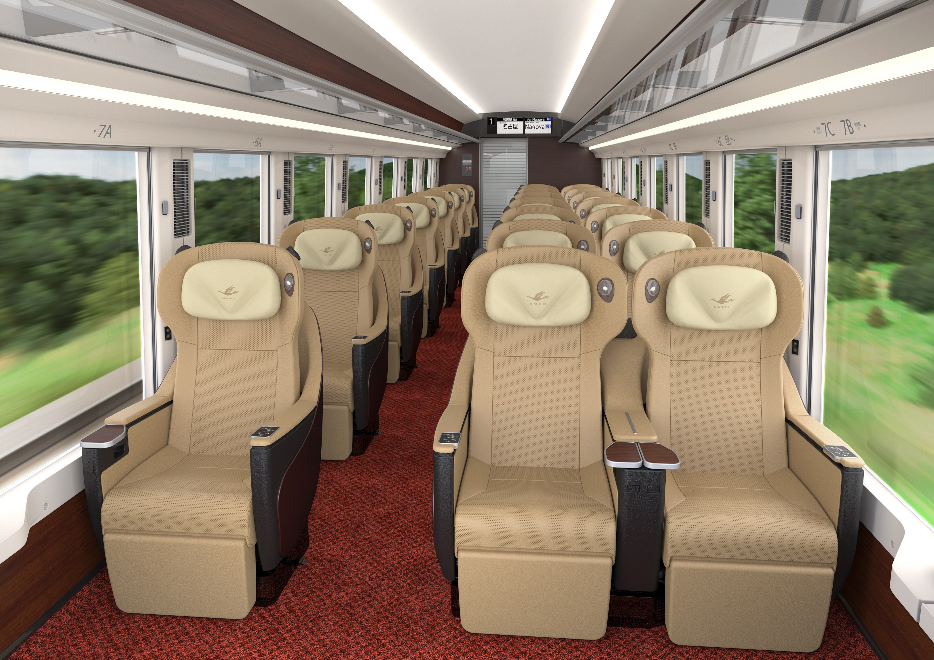 而列车相邻座椅的前后间隔,也实现了日本国内最大的距离。4列席并列的“普通车辆”座椅间间隔为116厘米,与东海道新干线的主力车辆“N700A”的绿色车厢(1等车厢)相同。同时,3列席的“特别车辆”则直接将间隔距离拓展至130厘米。