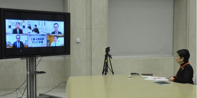 鉴于东京都内新冠肺炎确诊病例的激增特召开的本次一都四县视频会议,东京都知事小池百合子呼吁:“守护都民及县民的生命、健康是我们共同的职责。立足于国家、地方之间、居民以及企业之间的多重合作,让我们共同抵抗病毒。”