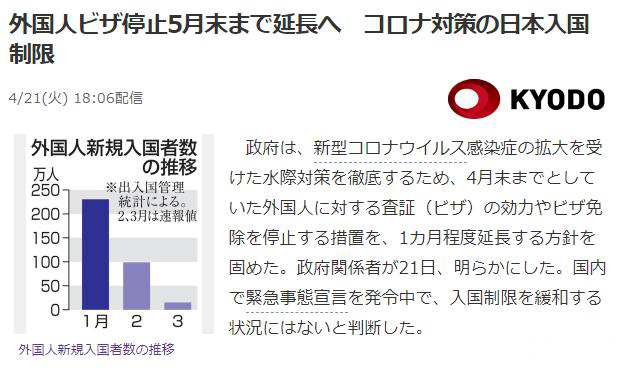 根据此前发布的消息,该限制措施原定实施至4月末。由于疫情目前在全球的大爆发,现日本政府已基本决定将这一措施期限暂延长一个月至5月末。至于何时将取消这一入境限制政策,预计将会在日本国内疫情得到缓和的时候,也就是在解除紧急状态后。