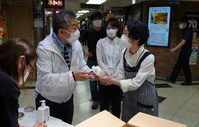 自5月16日起,日本大阪府政府根据独自基准,已经解除了部分餐饮店及商业设施的停业要求。现在,JR大阪站附近的新梅田美食街已重新开始营业,由102家店铺组成的店主会协同公会向各店铺免费分发了消毒液,供来店顾客消毒使用。