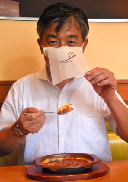 大型家庭餐厅公司·萨莉亚(Saizeriya)近日宣布,其设计出了一种可以边佩戴着口罩边用餐的方法。所需材料仅为自己的口罩以及1张纸巾。作为新型冠状病毒感染对策的一环,萨莉亚呼吁多人一同来店的团体顾客佩戴这种口罩。
