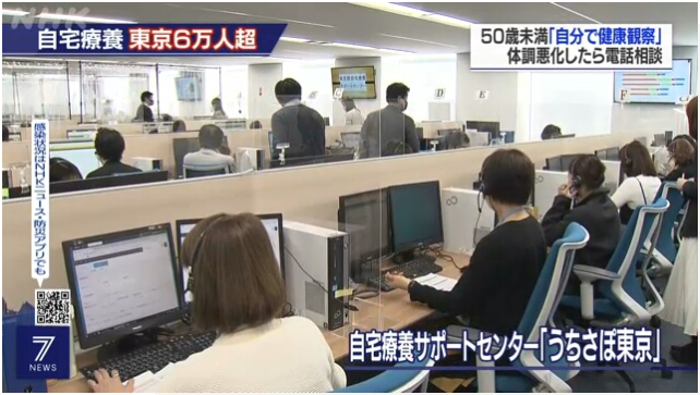 鉴于新冠疫情在日本急速扩散,确诊患者人数猛增,东京都对年龄不满50岁及无症状或轻症患者于居家疗养的措施,改为由本人自行监测健康情况。同时,自1月31日9时起,为了降低患者出现重症的风险,便于病情恶化时的紧急联系,东京都还启动了“居家疗养支援中心”。该中心配备了300条电话热线,可以全天24小时提供11种外语的电话咨询支援。