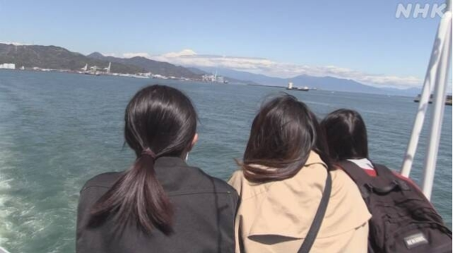 该“通学船”在4月5日开航仪式后,首航约有80名左右学生登船,航行途中一边吹着海风一边欣赏骏河湾对岸的富士山美景。