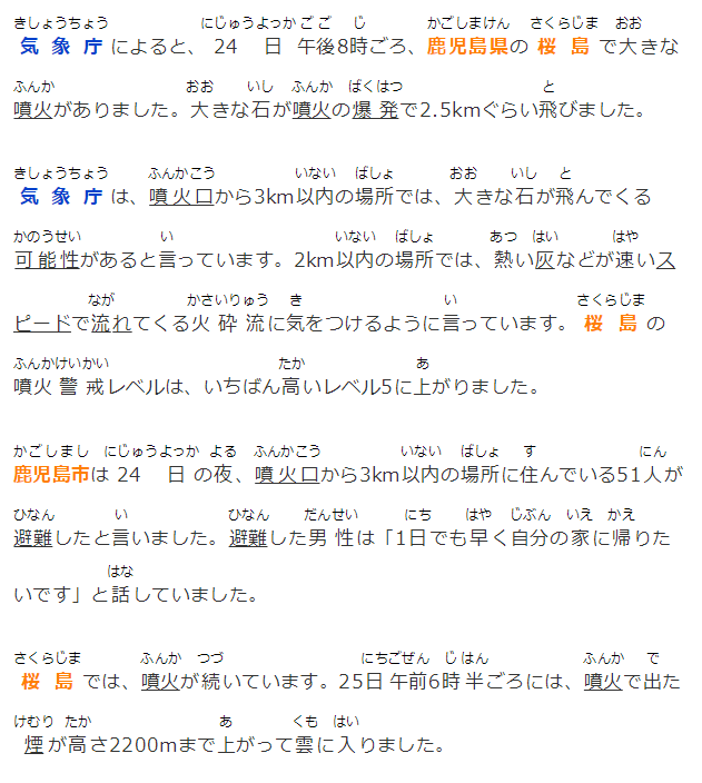 気象庁によると、24日午後8時ごろ、鹿児島県の桜島で大きな噴火がありました。大きな石が噴火の爆発で2.5kmぐらい飛びました。