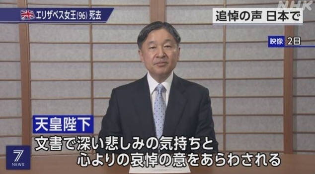 天皇陛下以文章形式表达了自己的心情。天皇陛下在文章中说:“我表示深深的悲伤之情和由衷的哀悼之意。我对女王陛下留下的丰功伟绩和贡献表示由衷的敬意和感谢。”