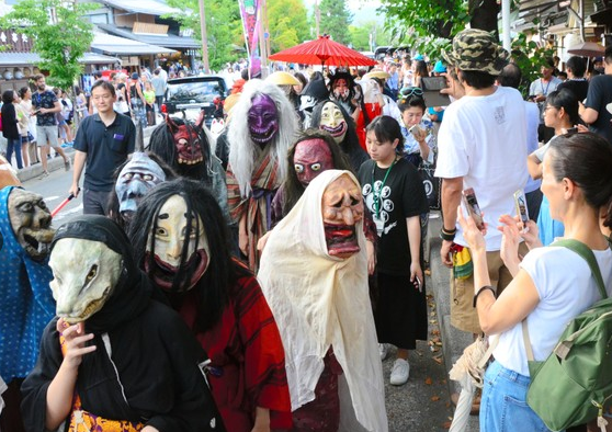 扮成妖怪的一行人下午4点从岚电岚山站至渡月桥之间往返后,于下午5点乘坐了岚电岚山站发车的妖怪电车。车厢内光线昏暗且播放着阴森森的音乐,但不时响起了孩子们的欢笑声和尖叫声。一家五口人一起为了乘坐妖怪电车而来,家住京都府龟冈市的柳原海(4岁)带着兴奋地说“妖怪全部都很可怕,特别是骨头鬼”。