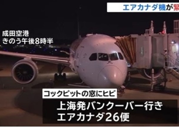 9月1日晚间8点28分左右,一架由上海飞往加拿大温哥华的加拿大航空(Air Canada)波音787客机,在起飞三小时后因驾驶舱挡风玻璃出现裂痕,于东京成田机场紧急降落,所幸机上299名乘客及机组人员无人受伤。