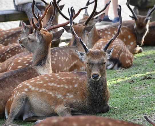 家住大阪府丰能町的大学生横田凌,为观光到访于此。横田笑着表示“还是头次见到在同一个地方聚集着这么多的鹿。虽然数量太多了让人有点不舒服,但还是不由觉得可爱。”