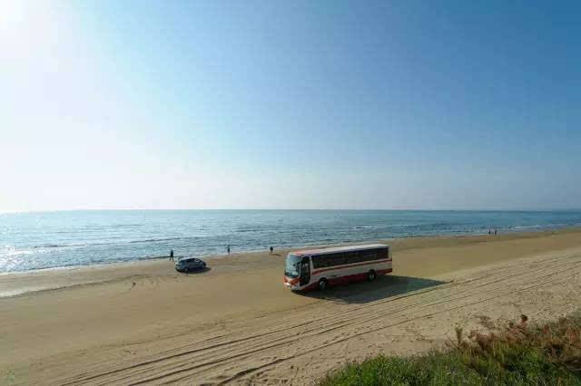 “千里滨沙滩兜风道”由于沙粒较细,在吸收海水后便会收缩,因此大型巴士也可以在上面行驶。但另一方面,因海流变化等影响,由于持续受到侵蚀,沙滩的宽度正在持续变窄。