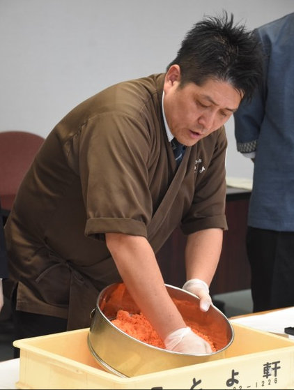 位于四日市市西日野町,于1948年创业“梦果子工房Kotoyo”推出的“生鱼片羊羹”,售价为含税648日元(约合人民币43元)。店家用羊羹模仿金枪鱼和鰤鱼的生鱼片外观,为了再现横断面,还用细线切开,细节之处也处理得十分完美,制作工艺非常讲究。