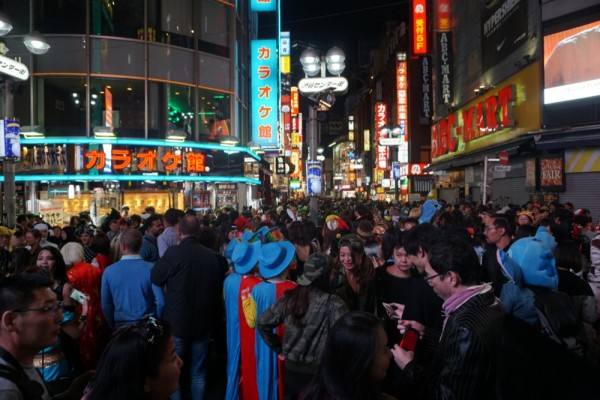 装扮成漫画中的角色或用面具戴在脸上。其中不乏众多外国人的身影,警视厅的警察实施交通管制,并疏导步行者等措施。