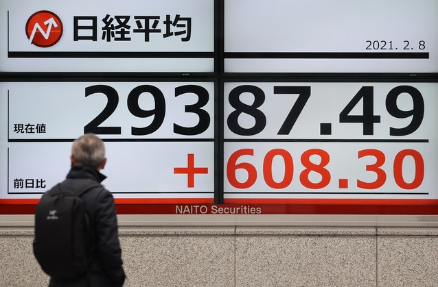 2月8日,日本东京股票市场,日经平均股价大幅上升至29000多点。这是自1990年8月以来,时隔30年零6个月再次达到这一高点。