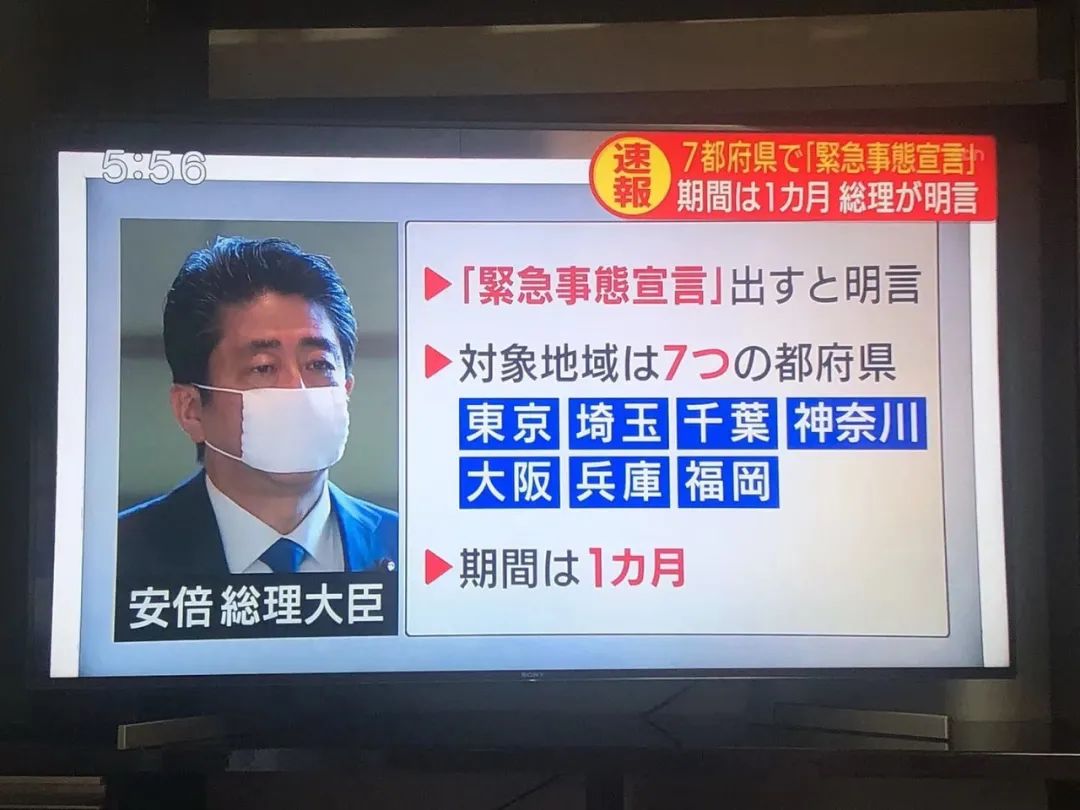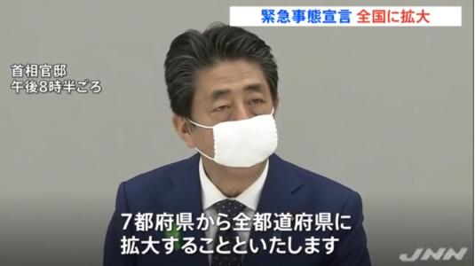 日本首相安倍晋三宣布,由于国民的生命健康受到重大威胁,社会生活、经济可能遭受巨大影响,基于新冠特措法发布的“紧急事态宣言”的对象地区从东京、神奈川、埼玉、千叶、大阪、兵库、福冈7个都府县,扩大到日本全国,适用期间持续至5月6日。