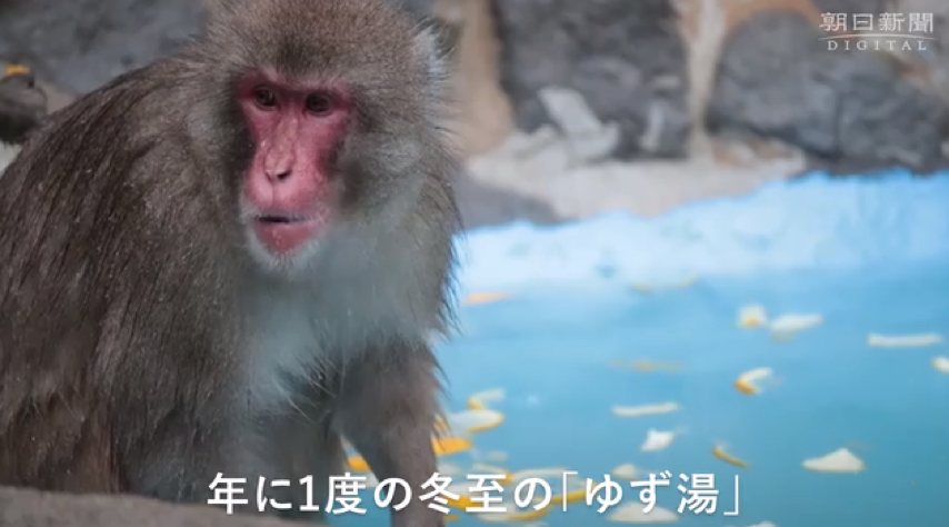 12月22日冬至这天,位于日本福冈市中央区的福冈市动物园的猴山,迎来了一年一度的“柚子浴”活动。