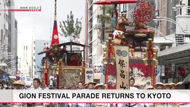 时隔3年,京都祇园祭最大的看点、前祭的“山鉾巡行”于7月17日再次举办。绚丽豪华的大型花车、山车与鉾车在京都的大街上巡游。