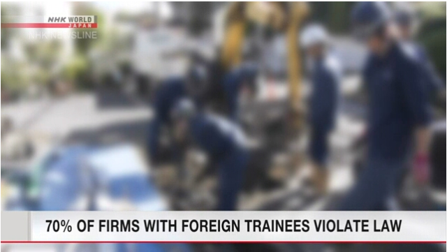 根据日本厚生劳动省的统计,2020年劳动基准监督署对接受外国人技能实习生的有关单位所进行的入内调查结果显示,大约70%的单位都存在违反安全管理或超过规定时间的劳动等违法违规现象。