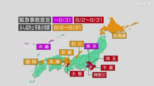 为了更好地防控新冠疫情,日本政府计划把埼玉县、千叶县、神奈川县和大阪府这4个府县也追加入适用紧急事态宣言的范围,并将北海道、石川县、兵库县、京都府、福冈县5个道府县适用“防止疫情蔓延等重点措施”范围。