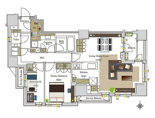 | 房型 | 2室1厅+SIC+Storage | 朝向 | 南东西 |