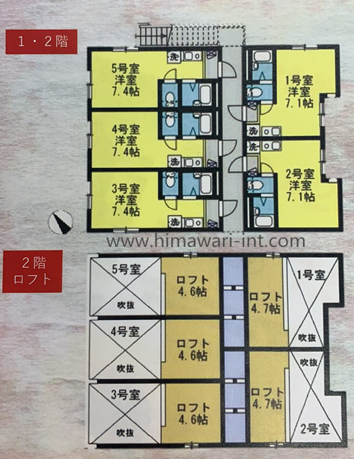 | 房型 | 1室×5户 1室+LOFT ×5户 | 朝向 | |
