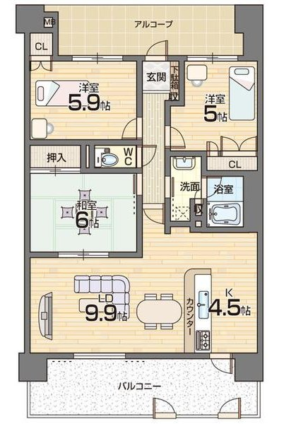 | 管理费 | 6280日元/月 | 修缮费 | 9480日元/月 |