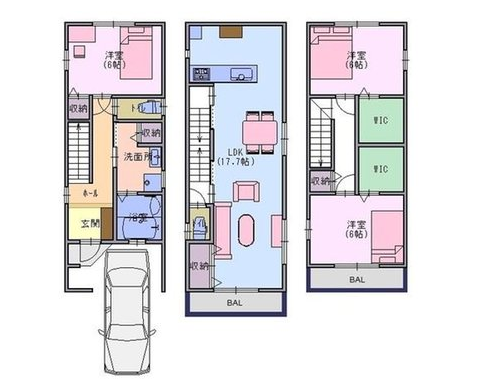 本物件有驻车场,3室1厅,全室木质地板,悬空楼梯设计,吧台式厨房,实用个性,可观的收纳空间,卫浴独立等,整体设计提升了生活的精致度,