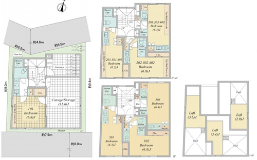 | 房型 | 1室×9 1室+LOFT×3 1室+P×1 | 朝向 | / |