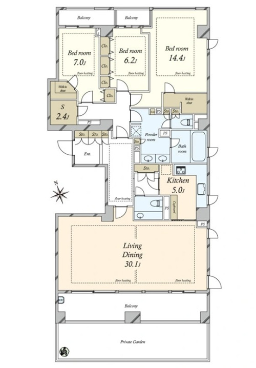 2000年2月建成,永久产权,符合新抗震标准。位于东京都港区西麻布幽静的高级住宅街,2线2站可以利用,距最近【広尾】站徒步8分钟,【六本木】站徒步12分钟,另外到西麻布公交站徒步3分钟,可以直接区涩谷,品川,新宿等区域。周边711便利店徒步3分钟,超市徒步4分钟,日常购物很方便。公寓意大利花园的庭园设计,24小时接待服务,物件虽位于1层,但地处高地,有超过2层的高度,162.05㎡大型3室1厅,28.66㎡的阳台,还有个15.30㎡的私人小花园,预计2022年6月末完成室内装修,更新厨具,卫浴设备,地板,壁纸等生活配套设备。海外客户可以申请日本银行贷款购房,目前有两种方式:1.需要在日本设立公司,以法人名义购买,贷款额度约60-70%、还款周期25-35年、贷款利率1.5%起。2.个人名义购买,海外客户可以申请日本个人抵押贷款购房,不需要设立公司,贷款额度约50-60%,还款周期15-25年,贷款年龄65岁以内,贷款额度不能低于2000万日元,贷款利率2.7%起。详情欢迎咨询。