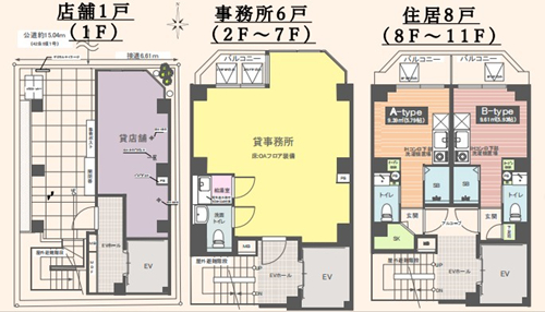 | 房型 | 店铺×1 事务所×6 住居×8 | 朝向 | / |