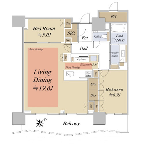 2021年10月建成,永久产权,符合新抗震标准。位于东京都江东区,2条线可以利用,距最近【豊洲】站均徒步4分钟。公寓地上48层付地下1层,24小时有人管理,安全系统完善,周围没有其他高层建筑物的遮挡,视野开阔,有健身室,客室,观景室,聚会室等丰富的共用设施,还开设大型超市,保育所,旁边就有小学,眼前是丰洲公园,养育孩子的优越环境,另外,人气商业设施LaLaport徒步5分钟。物件位于39层,南东向2室1厅,建成以来未入住,崭新的生活配套设备,客餐厅有地暖,系统厨具,卫浴独立,阳台使用玻璃设计,阳光更容易照射到室内。海外客户可以申请日本银行贷款购房,目前有两种方式:1.需要在日本设立公司,以法人名义购买,贷款额度约60-70%、还款周期25-35年、贷款利率1.5%起。2.个人名义购买,海外客户可以申请日本个人抵押贷款购房,不需要设立公司,贷款额度约50-60%,还款周期15-25年,贷款年龄65岁以内,贷款额度不能低于2000万日元,贷款利率2.7%起。详情欢迎咨询。
