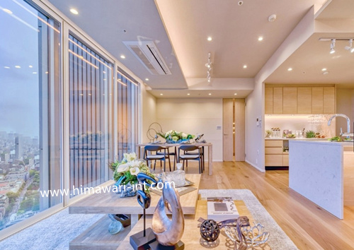 2011年1月建成的塔型公寓,钢筋混凝土造39层付地下1层,永久产权,符合新抗震标准。位于东京都港区六本木,【六本木】站徒步3分钟,【六本木一丁目】站徒步7分钟,去涩谷,东京,品川都很便利。公寓地处东京中城和六本木新城的中间位置,是可以享受休闲散步和购物的便利位置。公寓1F有超市,另外健身室,招待客室,空中休息室等共用设施丰富,酒店般的充实服务,24小时有人管理,24小时可以扔垃圾,电气化住宅。物件位于38层,2室1厅,客餐厅2面采光的全景窗,可以欣赏城市美丽风景,与客餐厅一体开放式厨房,设有照明,空调,丰富的收纳,有可步入式衣帽间,2个洗脸池的洗面台,让身心得到放松的卫浴设备,高品质的居住空间。海外客户可以申请日本银行贷款购房,目前有两种方式:1.需要在日本设立公司,以法人名义购买,贷款额度约60-70%、还款周期25-35年、贷款利率1.5%起。2.个人名义购买,海外客户可以申请日本个人抵押贷款购房,不需要设立公司,贷款额度约50-60%,还款周期15-25年,贷款年龄65岁以内,贷款额度不能低于2000万日元,贷款利率2.7%起。详情欢迎咨询。