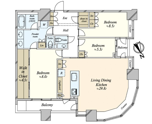 2008年4月建成的塔型公寓,永久产权,符合新抗震标准。位于东京都形成政治和商业中枢的港区虎之门区域,【神谷町】站钟,【虎ノ門】站,【御成門】站均可利用,周边商业购物设施充实,公寓钢筋混凝土造30层,24小时专人管理,除了接待员等服务之外,还配置了使用IC卡多重的安全检查设备,从大厅休息室可以眺望石砌艺术的庭园,配上客房,会议室,空中休息室等丰富的共用设施,以及各层垃圾放置处。物件位于28层,视野开阔,完成室内装修,131.72㎡3室1厅,采用系统厨具,地暖,内置空调,2处卫生间,双洗脸池,可步入式衣帽间及鞋柜等充实的收纳,追求舒适性的生活配套设备。海外客户可以申请日本银行贷款购房,目前有两种方式:1.需要在日本设立公司,以法人名义购买,贷款额度约60-70%、还款周期25-35年、贷款利率1.5%起。2.个人名义购买,海外客户可以申请日本个人抵押贷款购房,不需要设立公司,贷款额度约50-60%,还款周期15-25年,贷款年龄65岁以内,贷款额度不能低于2000万日元,贷款利率2.7%起。详情欢迎咨询。