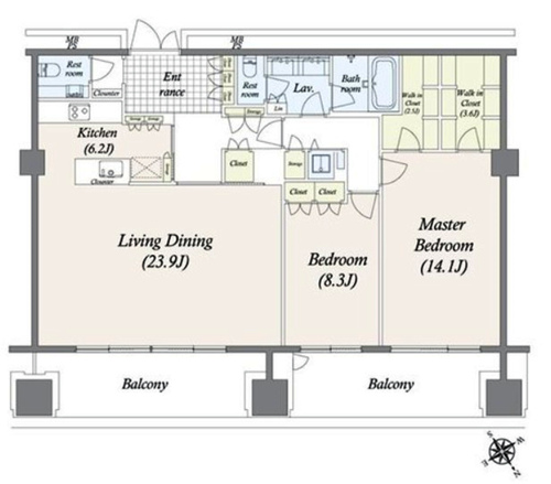2012年8月建成,永久产权,符合新抗震标准。位于东京都港区六本木一丁目,周边都是各国大使馆,美术馆,音乐厅等,充满着国际气息的高级塔型公寓,邻近东京湾,距最近【六本木一丁目】站徒步4分钟。公寓地上47层付地下4层,由低层店铺,中层住宅,高层办公室构成,24小时安全系统,为住户提供舒适的生活服务,观景室,客室,咖啡厅和会员制健身房,SPA和游泳池,车库等丰富设施。物件位于21层,130.60㎡2室1厅,21.66㎡阳台,客餐厅及各居室均朝向阳台,对面厨房,系统厨具,卧室均有收纳,其中主卧配可步入式衣帽间,双洗脸池,2处卫生间,充实的生活配套设备。海外客户可以申请日本银行贷款购房,目前有两种方式:1.需要在日本设立公司,以法人名义购买,贷款额度约60-70%、还款周期25-35年、贷款利率1.5%起。2.个人名义购买,海外客户可以申请日本个人抵押贷款购房,不需要设立公司,贷款额度约50-60%,还款周期15-25年,贷款年龄65岁以内,贷款额度不能低于2000万日元,贷款利率2.7%起。详情欢迎咨询。