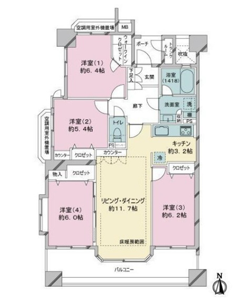2002年2月建成,永久产权,符合新抗震标准。位于日本埼玉县さいたま市浦和区驹场1丁目,距京滨东北.根岸线【浦和】站徒步18分钟,浦和车站周边聚集着餐饮店,伊势丹及PARCO等大规模商业设施,便利的生活环境,公寓钢筋混凝土造7层,附近有高.中.小学校,对于有学龄期孩子的家庭是很方便的地理位置,设置门禁,快递箱,4室1厅,南向,完成室内装修,更新生活配套设备,客餐厅天花板最高2.6m,并设置地暖及空调,南侧没有高的建筑物,透过宽大的落地窗,眺望良好,系统厨具,各居室均有收纳,其中一间是设置可步入式衣帽间,带三面镜洗面台,浴室带烘干器,卫浴独立,详情欢迎咨询。