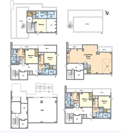 2021年7月建成,永久产权,符合新抗震标准。位于东京都涩谷区代官山8丁目,距东急东横线【代官山】站徒步6分钟,JR山手线【涩谷】站徒步9分钟,地理位置优越。公寓楼地上4层付地下1层,带屋顶露台,东北侧宽约3.55m~4m私道,设置门禁、电梯,共6户,其中地下店铺,3F~4F是1室1厅,客餐厅在3F,挑高的屋顶,宽敞明亮,可自住,其余部分租赁,当然也可以全部出租,因为竣工不久,外观及室内维持良好状态,生活配套设备充实,目前部分出租中,详情欢迎咨询。海外客户可以申请日本银行贷款购房,目前有两种方式:1.需要在日本设立公司,以法人名义购买,贷款额度约60-70%、还款周期25-35年、贷款利率1.5%起。2.个人名义购买,海外客户可以申请日本个人抵押贷款购房,不需要设立公司,贷款额度约50-60%,还款周期15-25年,贷款年龄65岁以内,贷款额度不能低于2000万日元,贷款利率2.7%起。