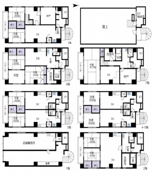 1986年9月建成,永久产权。位于东京都江东区,从中央.总武线【龟户】站徒步2分钟,东武龟户线【龟户】站徒步5分钟。附近步行5分钟内有商场、超市、药妆店、银行等,生活购物便利的地理位置。大楼铁骨钢筋混凝土造8层,南侧宽约36.9m道路,设置电梯、自行车存放场,1F店铺.事务所,2F开始住居部分,南面采光,室内配套设备齐全,目前满室出租中,详情欢迎咨询。 海外客户可以申请日本银行贷款购房,目前有两种方式:1.需要在日本设立公司,以法人名义购买,贷款额度约60-70%、还款周期25-35年、贷款利率1.5%起。2.个人名义购买,海外客户可以申请日本个人抵押贷款购房,不需要设立公司,贷款额度约50-60%,还款周期15-25年,贷款年龄65岁以内,贷款额度不能低于2000万日元,贷款利率2.7%起。