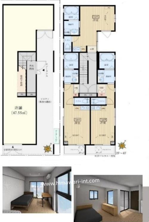预定2023年7月中旬竣工,永久产权,符合新抗震标准。位于东京都台东区,3线2站可以利用,近邻【浅草】站、【入谷】站,可直达上野、银座、涩谷。公寓楼钢筋混凝土造4层,东南侧有宽约6.0m道路,设有快递箱,1F1户店铺,2F至4F住居部分,各户超20㎡,室内生活配套设备完善,详情欢迎咨询。海外客户可以申请日本银行贷款购房,目前有两种方式:1.需要在日本设立公司,以法人名义购买,贷款额度约60-70%、还款周期25-35年、贷款利率1.5%起。2.个人名义购买,海外客户可以申请日本个人抵押贷款购房,不需要设立公司,贷款额度约50-60%,还款周期15-25年,贷款年龄65岁以内,贷款额度不能低于2000万日元,贷款利率2.7%起。
