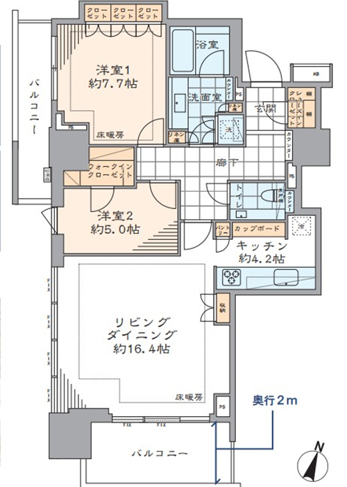 2017年11月建成,永久产权,符合新抗震标准。位于东京都千代田区,3线2站可以利用,近邻【市ヶ谷】站、【半蔵门】站,可直达新宿站、涩谷站等。公寓楼地上18层付地下1层,近邻小学校、公园,周边散布着多个超市,日常购物方便。公寓楼设有花园休息室、可饲养宠物(有细规),公寓位于5层,西南向角住户,82.42㎡2室1厅,完成室内翻新,更新生活配套设备,南侧及西侧两面阳台,客餐厅及主卧设有地暖、空调,半开放式厨房,有鞋柜、步入式衣帽间等充实收纳,卫浴独立,详情欢迎咨询。海外客户可以申请日本银行贷款购房,目前有两种方式:1.需要在日本设立公司,以法人名义购买,贷款额度约60-70%、还款周期25-35年、贷款利率1.5%起。2.个人名义购买,海外客户可以申请日本个人抵押贷款购房,不需要设立公司,贷款额度约50-60%,还款周期15-25年,贷款年龄65岁以内,贷款额度不能低于2000万日元,贷款利率2.7%起。