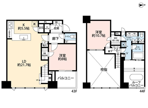 2009年12月建成的大规模高层公寓楼,永久产权,符合新抗震标准。位于东京都江东区,东京地下铁有乐町线、ゆりかもめ2线路可利用,近邻【豊洲】站,至银座、东京、羽田机场等都方便,周边有大型商业设施、医疗机构、教育机构等生活便利设施。公寓楼地上44层付地下1层,24小时专人管理,多重安全系统,酒店风格的内部走廊,各层有垃圾回收室,公寓位于43F~44F顶层,复式2室1厅,客餐厅有地暖,L字型系统厨房,鞋柜及步入式衣帽间等收纳充实,44F屋顶露台附带按摩浴缸,详情欢迎咨询。海外客户可以申请日本银行贷款购房,目前有两种方式:1.需要在日本设立公司,以法人名义购买,贷款额度约60-70%、还款周期25-35年、贷款利率1.5%起。2.个人名义购买,海外客户可以申请日本个人抵押贷款购房,不需要设立公司,贷款额度约50-60%,还款周期15-25年,贷款年龄65岁以内,贷款额度不能低于2000万日元,贷款利率2.7%起。