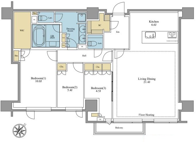 2021年1月建成,永久产权,符合新抗震标准。位于东京都涩谷区,近邻东急东横线【代官山】站。公寓楼地上4层付地下1层,多重安全系统设备,有专人管理,设快递柜、可饲养宠物(有细规)。公寓位于3层,东南向3室1厅,2024年11月完成室内翻新,客餐厅有地暖,主卧设有步入式衣帽间,双洗脸池,2个卫生间,详情欢迎咨询。