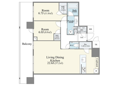2019年2月建成,永久产权,符合新抗震标准。位于东京都中央区,3线2站可以利用,近邻【月岛】站、【丰洲】站。公寓楼地上48层付地下1层,伫立在河畔,像度假区般设计理念,被绿植包围的居住环境中,有可以享受露营的露台,运动公园,客室、健身房等共用设施完善,设有门禁、快递柜、驻车场,可饲养宠物(有细规),周边超市、便利店等日常购物设施充实。公寓位于22层,2室1厅,所有房间朝向阳台,采光通风良好,各居室有步入式衣帽间,详情欢迎咨询。海外客户可以申请日本银行贷款购房,目前有两种方式:1.需要在日本设立公司,以法人名义购买,贷款额度约60-70%、还款周期25-35年、贷款利率1.5%起。2.个人名义购买,海外客户可以申请日本个人抵押贷款购房,不需要设立公司,贷款额度约50-60%,还款周期15-25年,贷款年龄65岁以内,贷款额度不能低于2000万日元,贷款利率2.7%起。